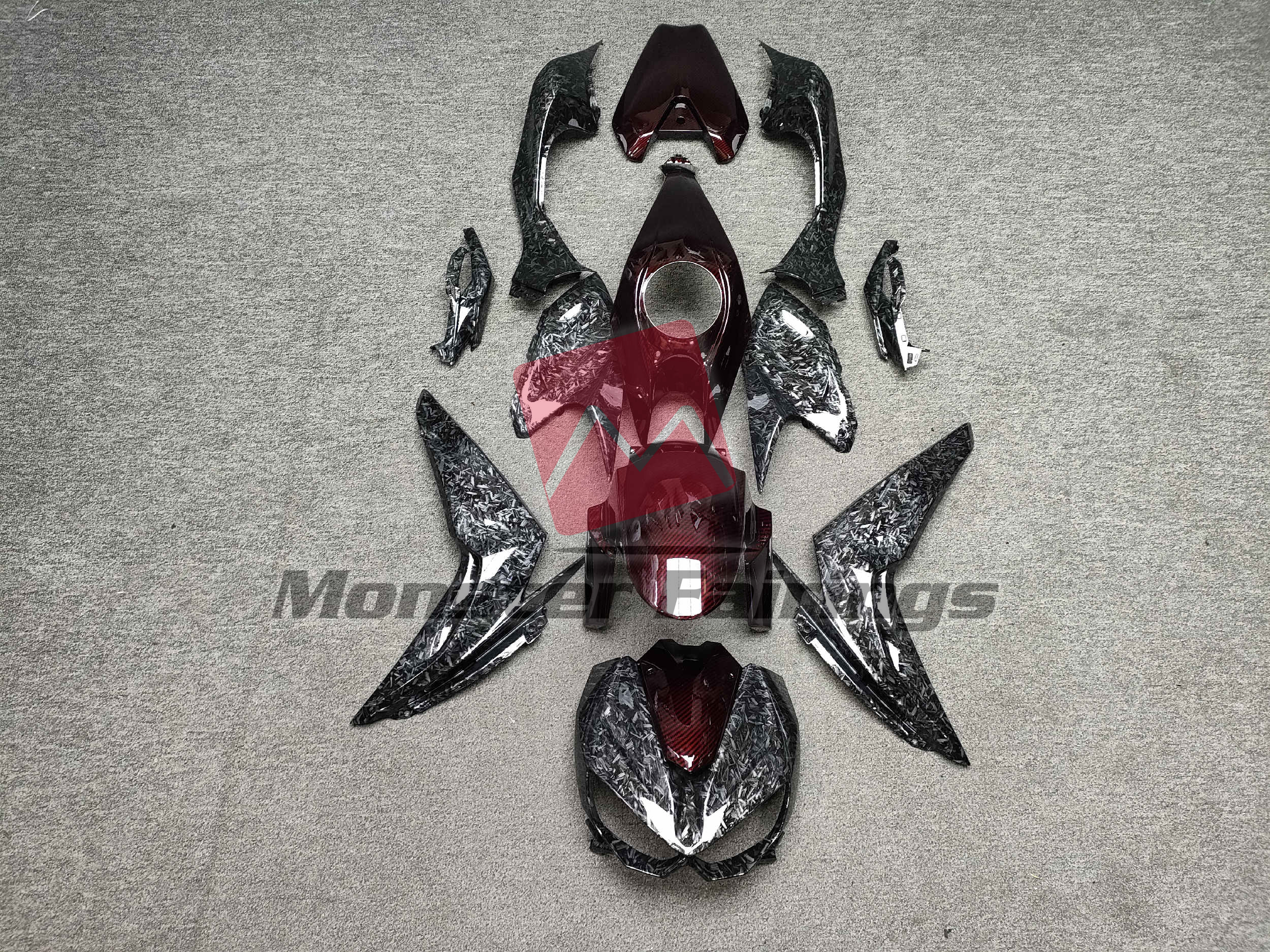 Gloss Black Forged Carbon Fiber Style With Red Carbon Fiber Style – Z1000 14-17