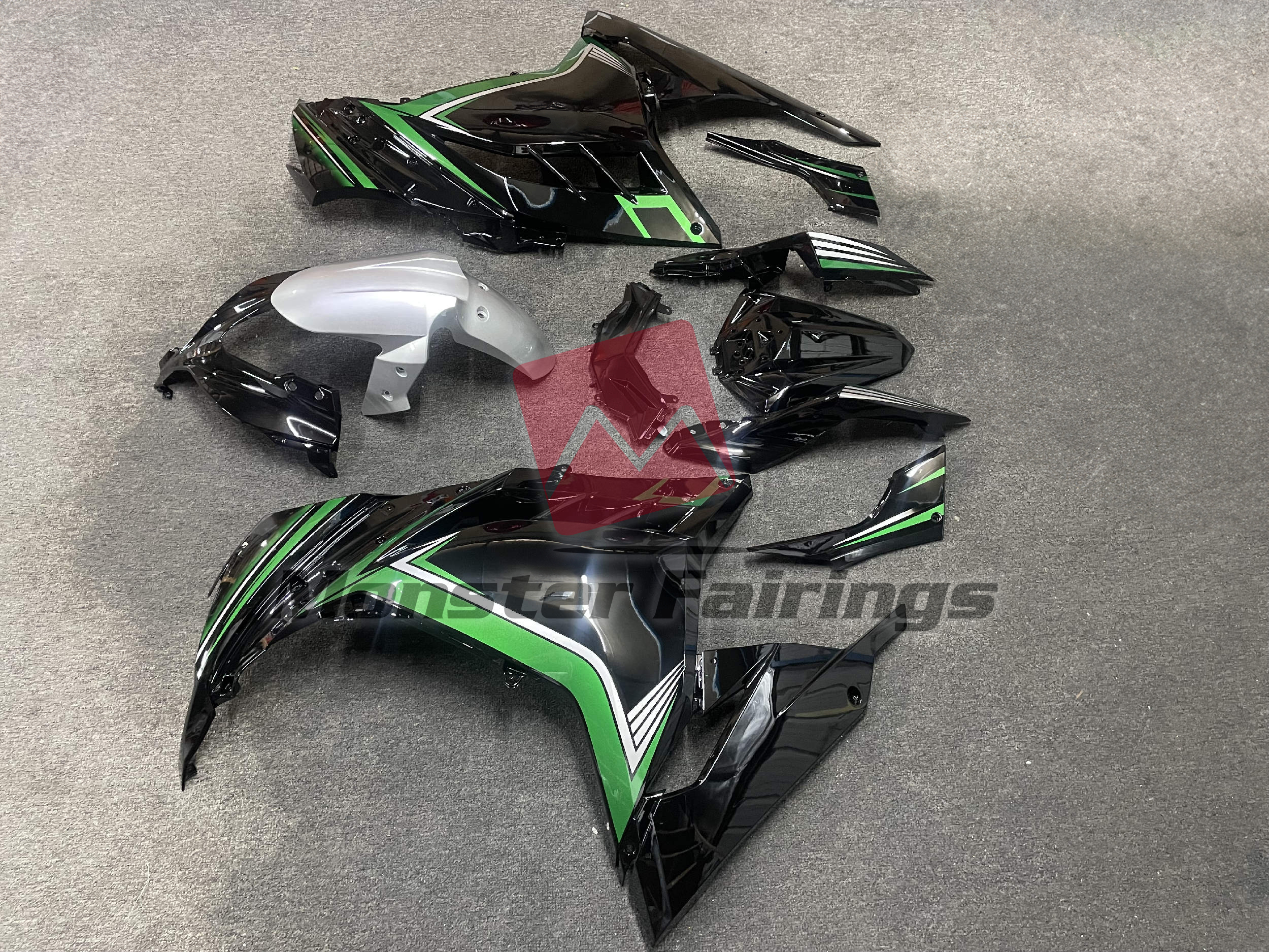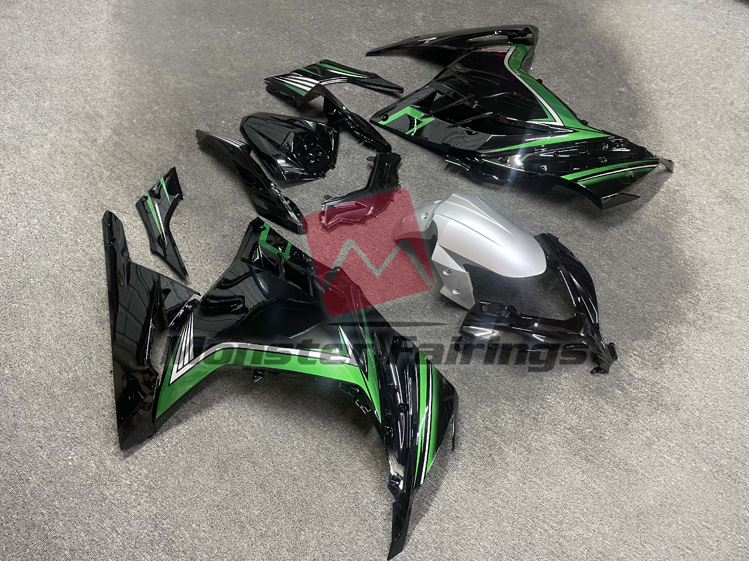 Gloss Black with Green & Silver - Ninja 300 13-22