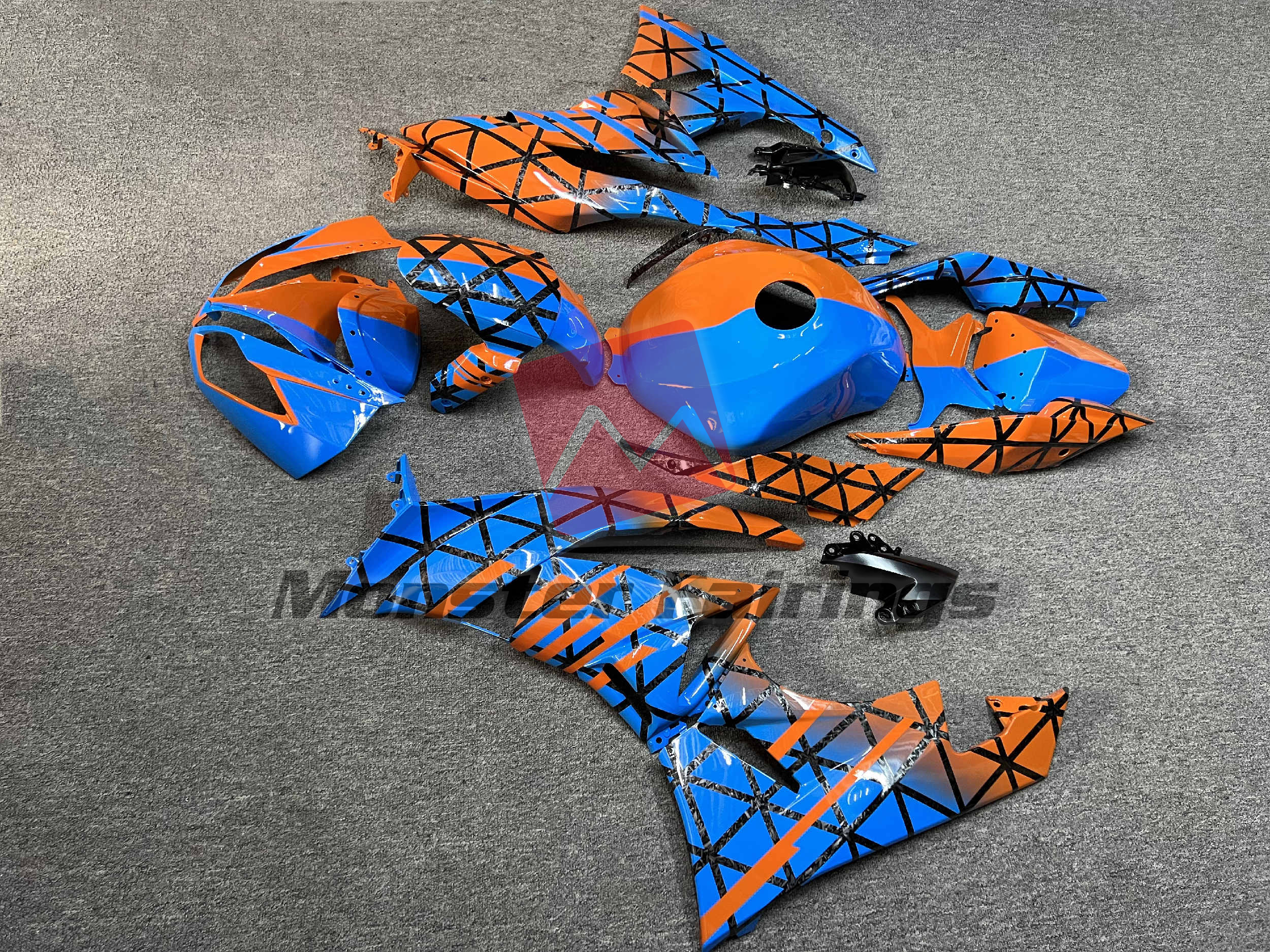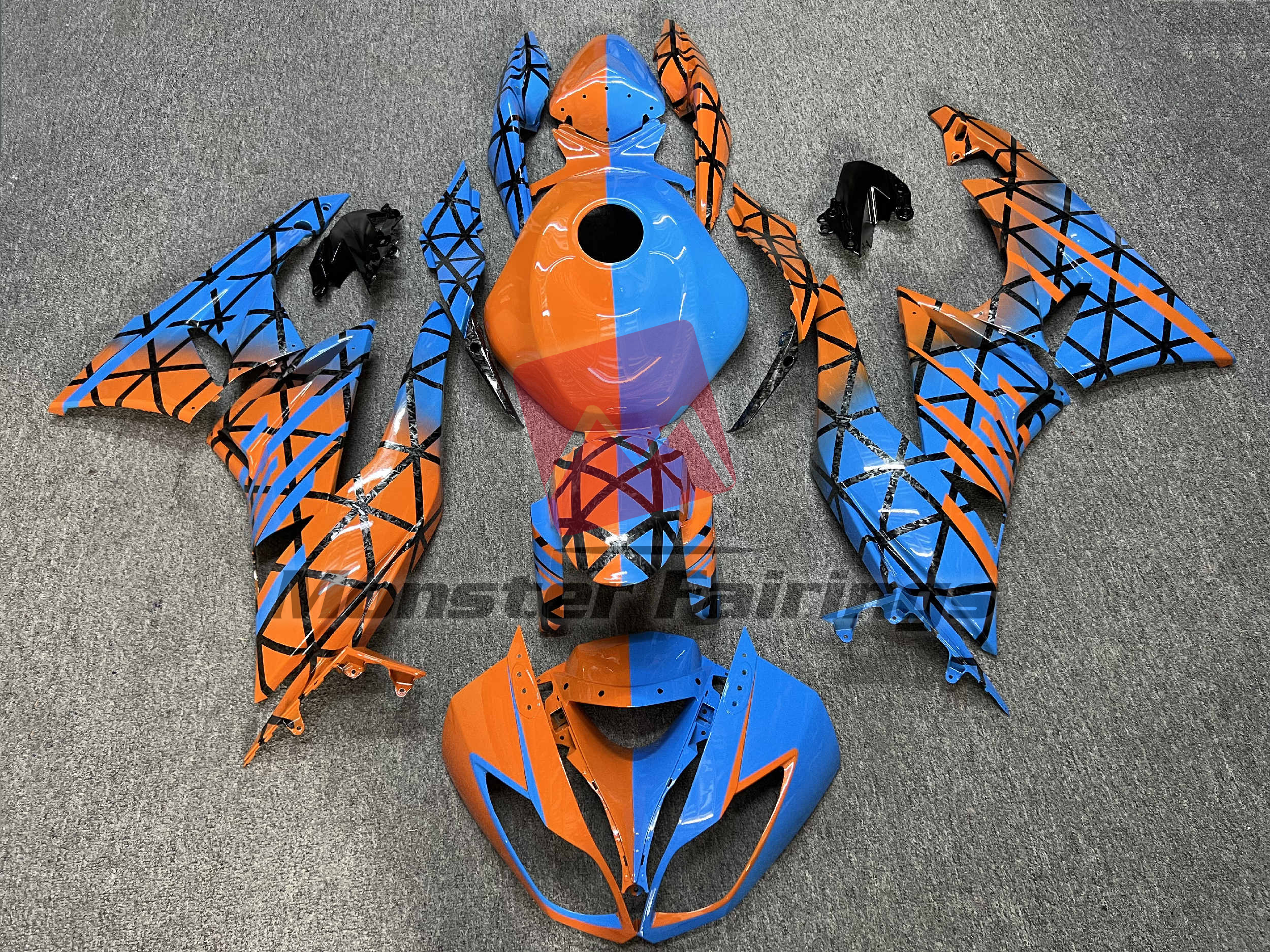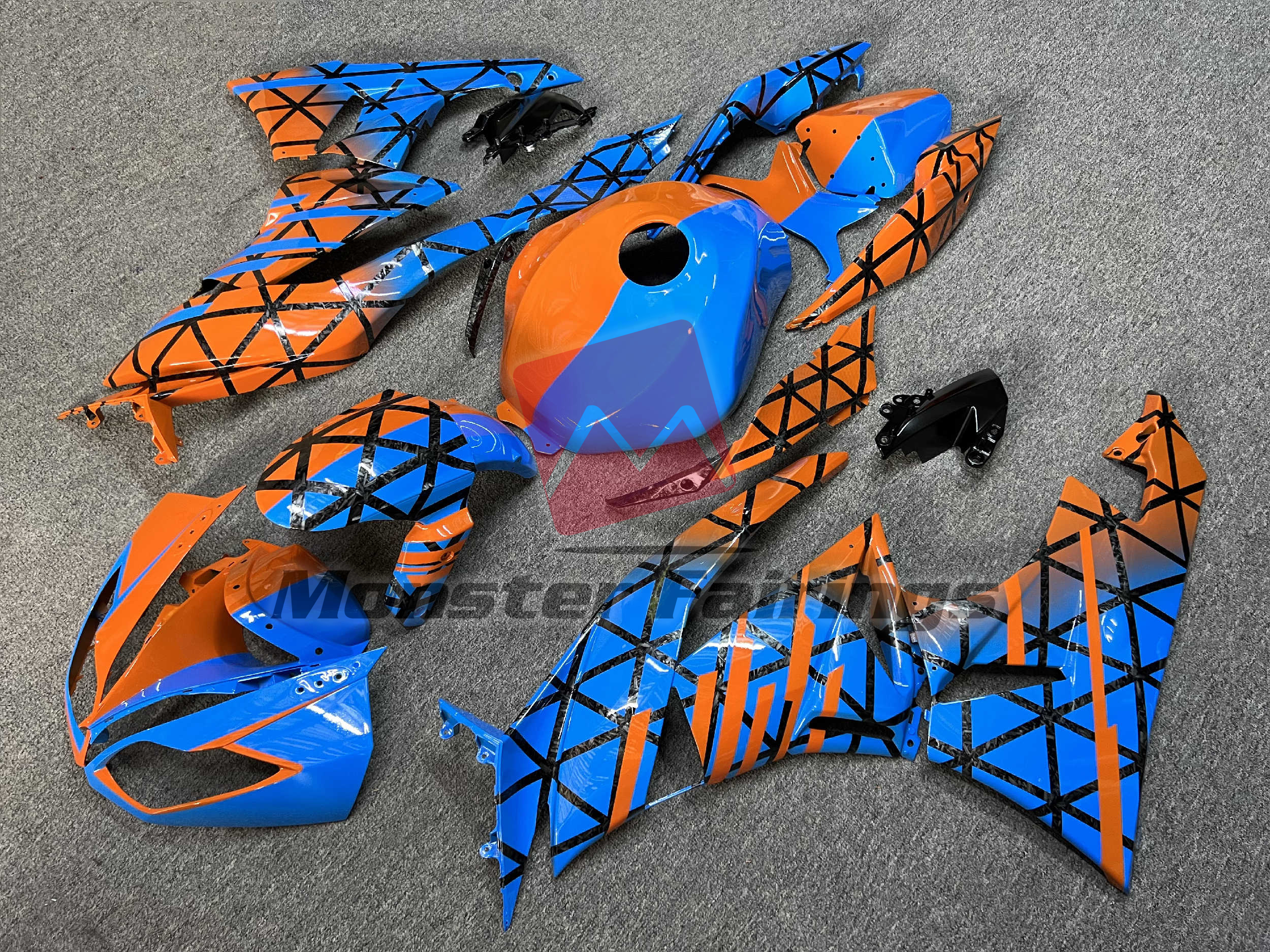 Gloss Blue & Orange With Forged Carbon Fiber Style Pattern Split – ZX6R 09-12