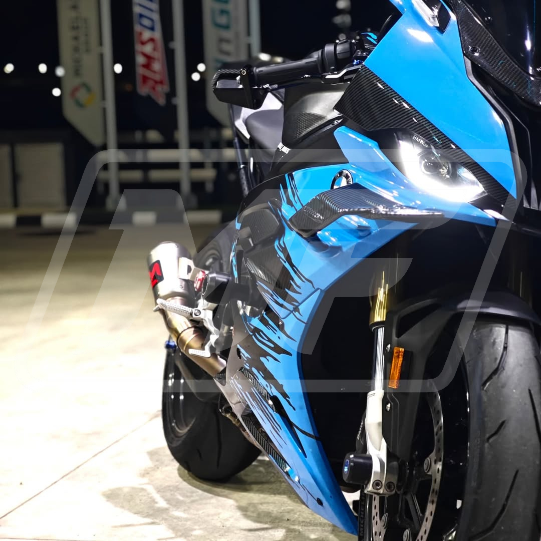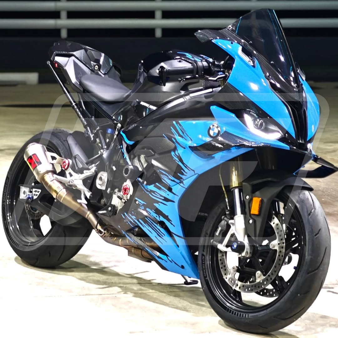 Gloss Carbon Fiber Style with Light Blue Splash – S1000RR 23-24
