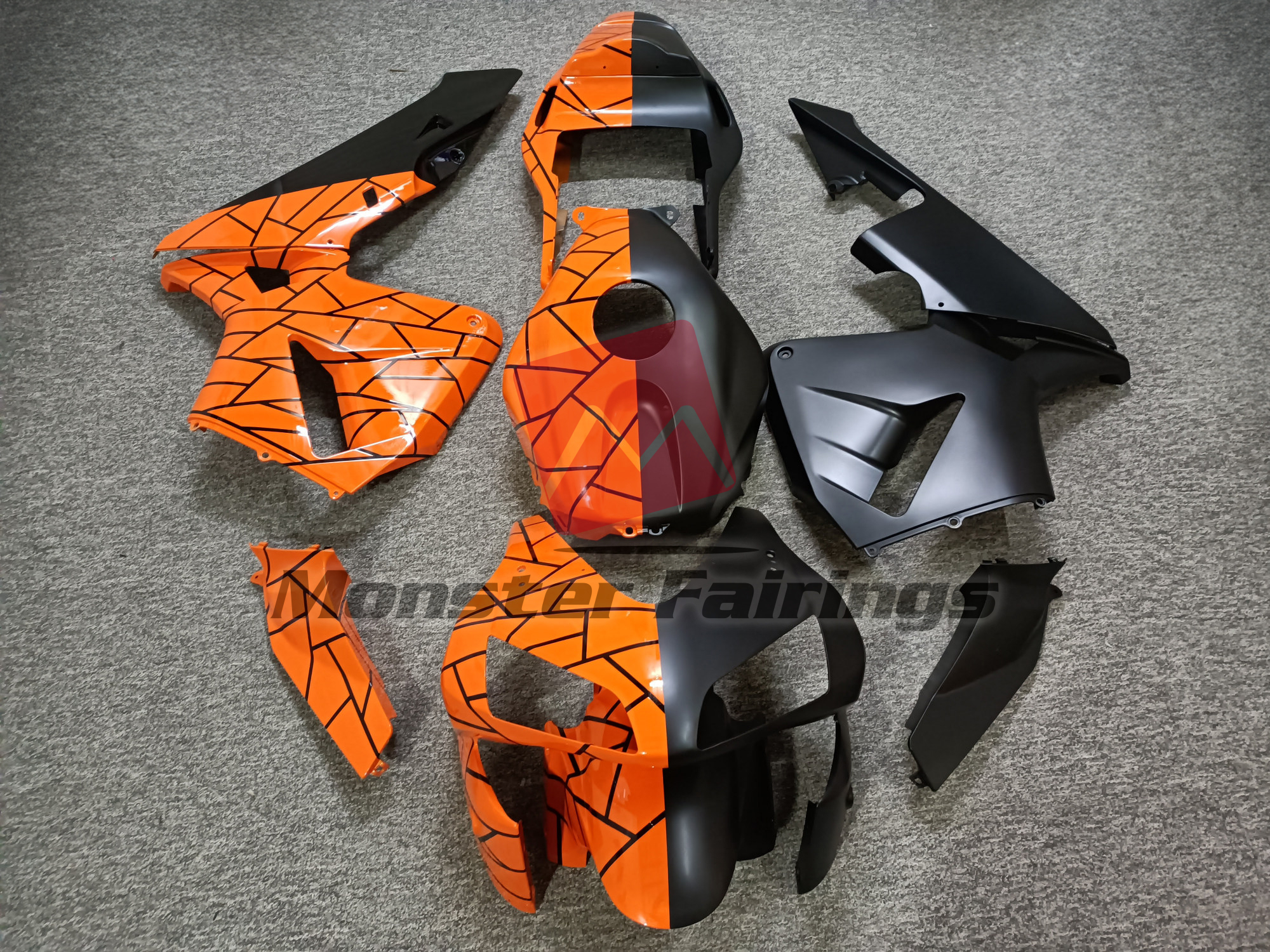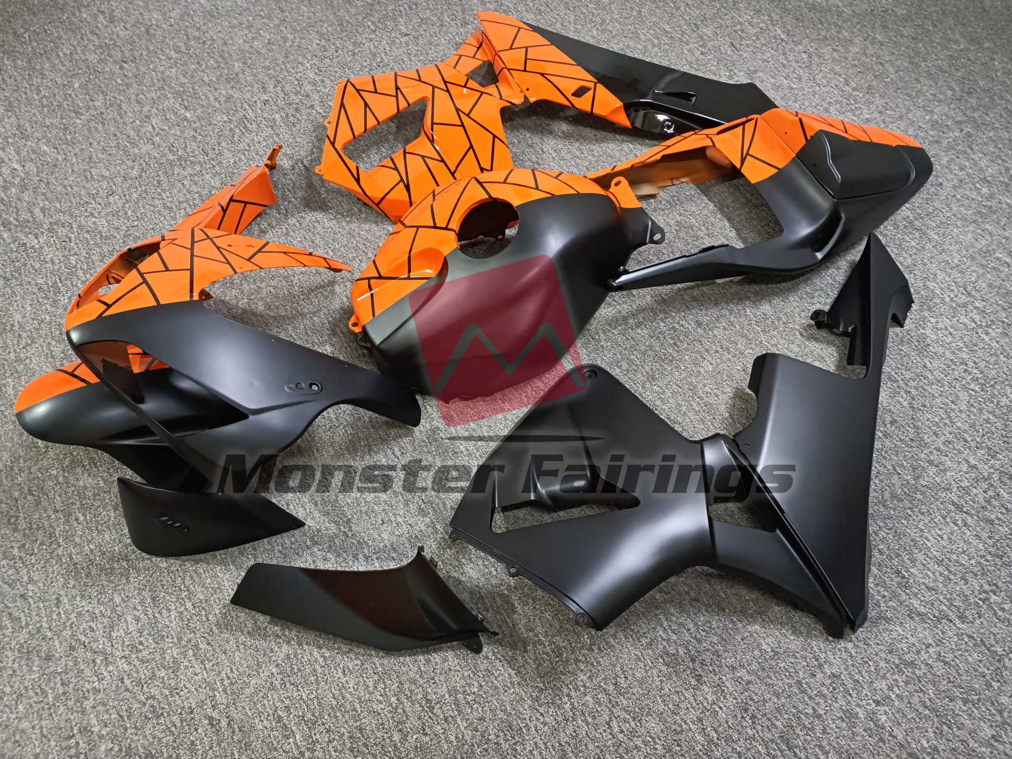 Matte Black & Gloss Orange Pattern Split – CBR600RR 03-04